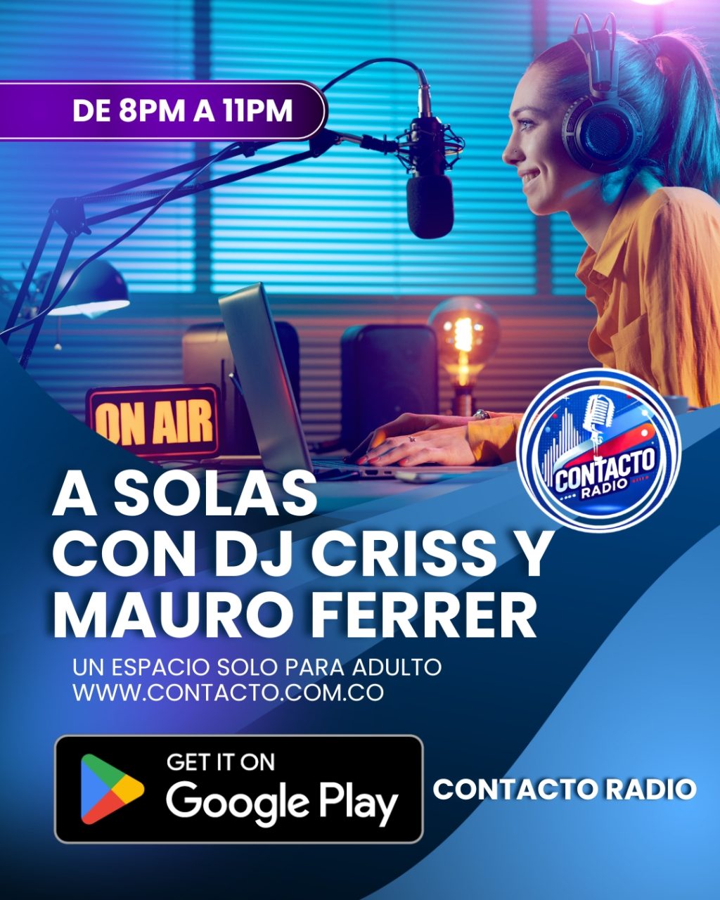 Las noches ya no volverán a ser iguales. Llega a la radio “A Solas con DJ Criss y Mauro Ferrer”, un espacio diseñado para adultos donde se abordan sin censura temas de sexología, erotismo y relaciones, siempre con un toque de picante, respeto y mucha autenticidad.